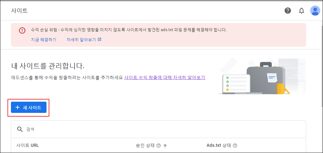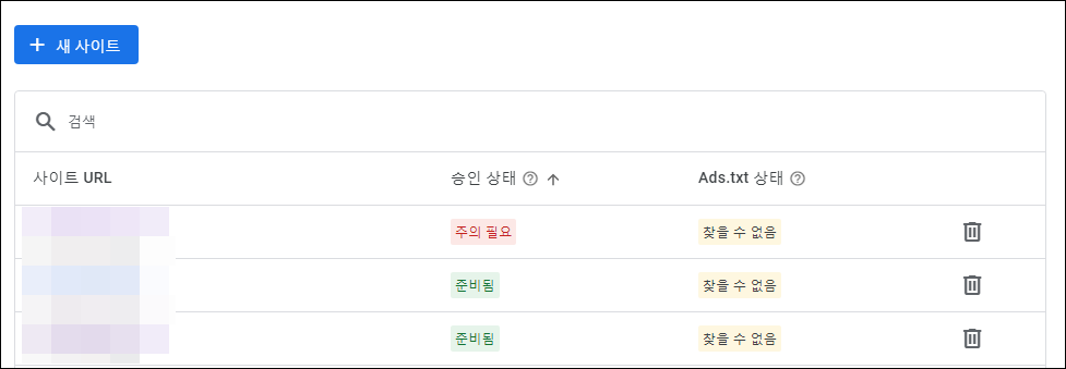 3. 그리고 목록에서 사이트가 삭제가 되면, 다시 +새 사이트를 눌러주세요