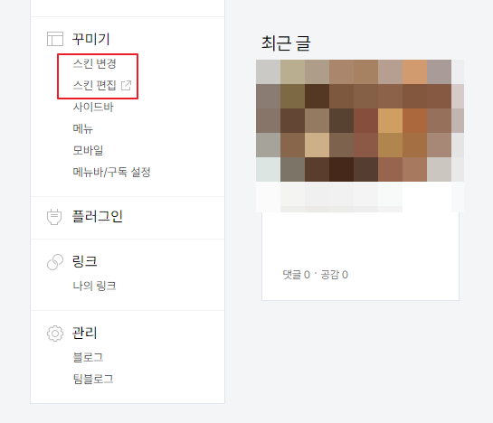 1-1. 블로그 관리 > 꾸미기 > 스킨 변경