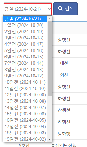 - 게시된 지연시간은 해당 시간대(첫차~09시, 09시~18시, 18시~막차)에서 발생한 최대 지연 시간이며, 5분 단위(5분, 10분..)로 구분하여 게시합니다.