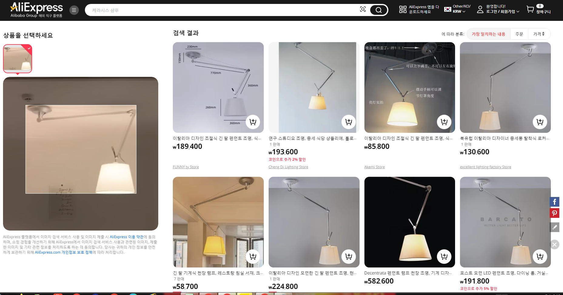 저렇게 크게 캡쳐한 사진을 그대로 올리면, 전체 느낌으로 검색을 해서 내가 원하는 제품을 찾아주지 못하더라구요. 조그맣게 잘라야 합니다. 윈도우 그림판을 이용하시면 저 조명 부분만 잘라내기가 가능합니다.