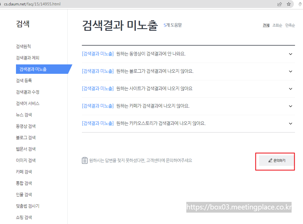 5. 이제 다 온겁니다. 여기에서는 그냥 간단한 FAQ 같은 문의만 검색해보는 곳이구요.