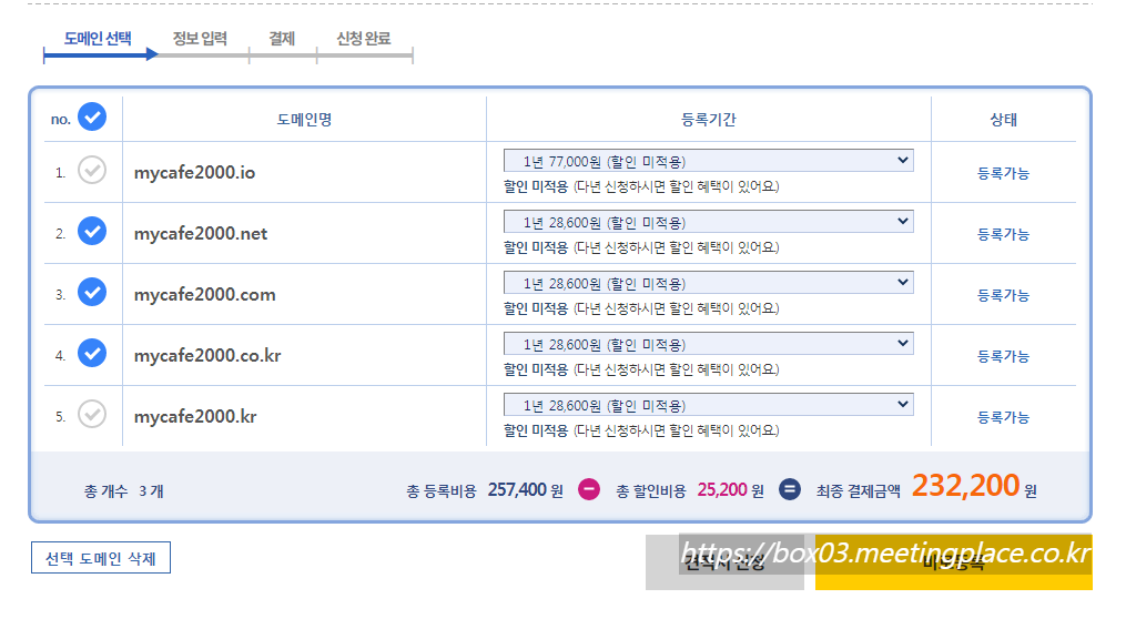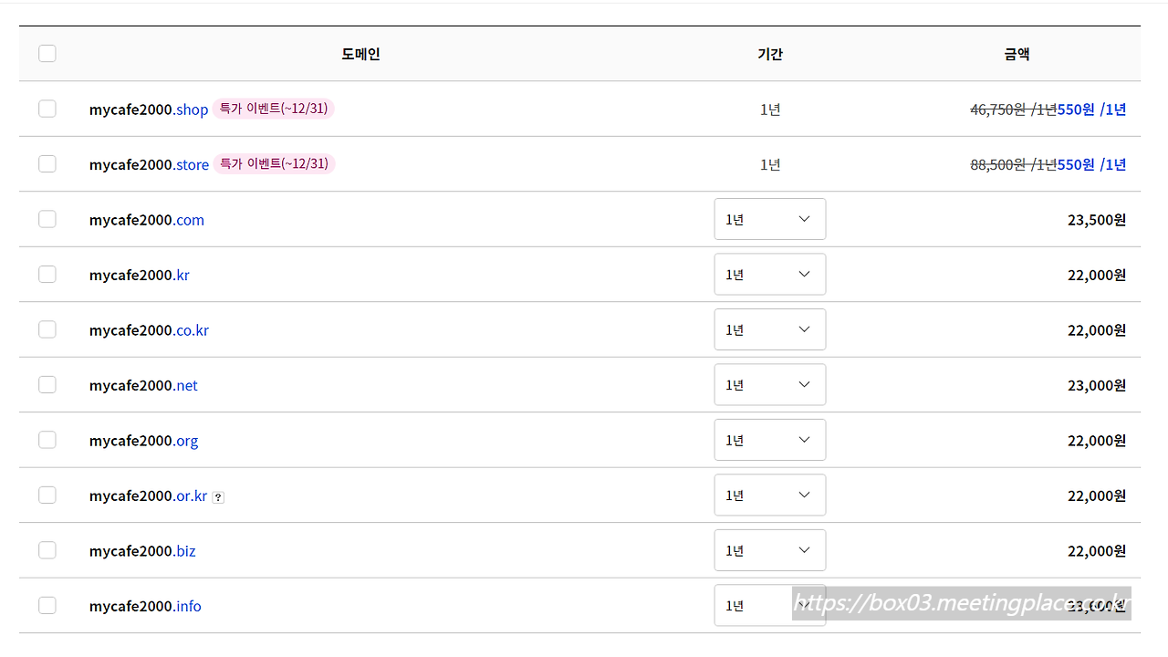 내가 살 도메인이 일회성이 아니라 꾸준히 사용할 이름이라면 이벤트 전 후 가격을 미리 잘 알아보시고 구입하셔야합니다.