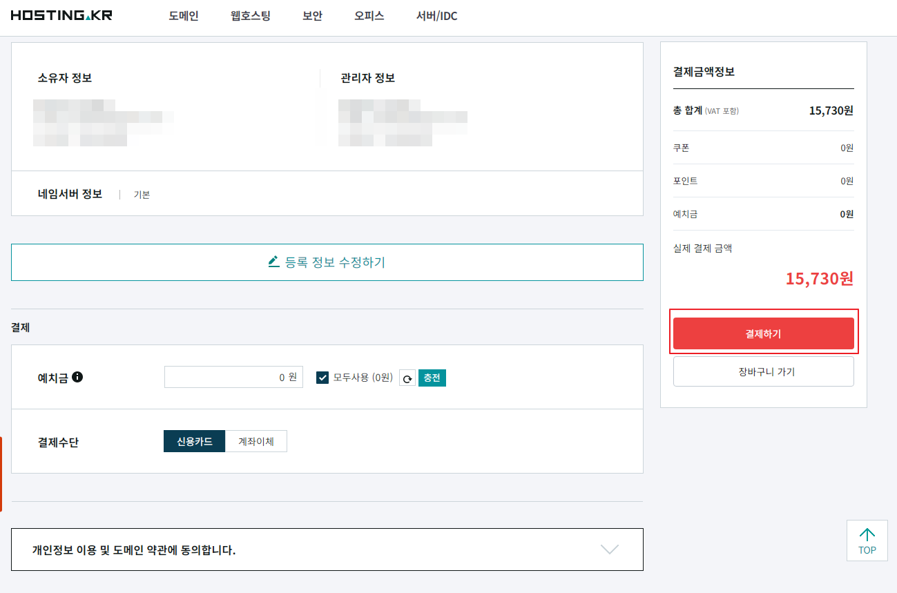 호스팅케이알(hosting.kr)에서 도메인 구입하는 방법