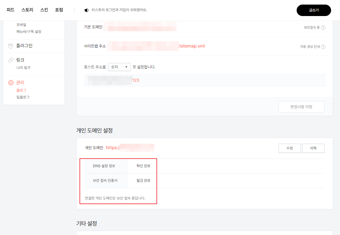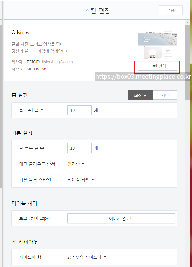 해당하는 화면은 티스토리 스킨 오딧세이에 해당하며