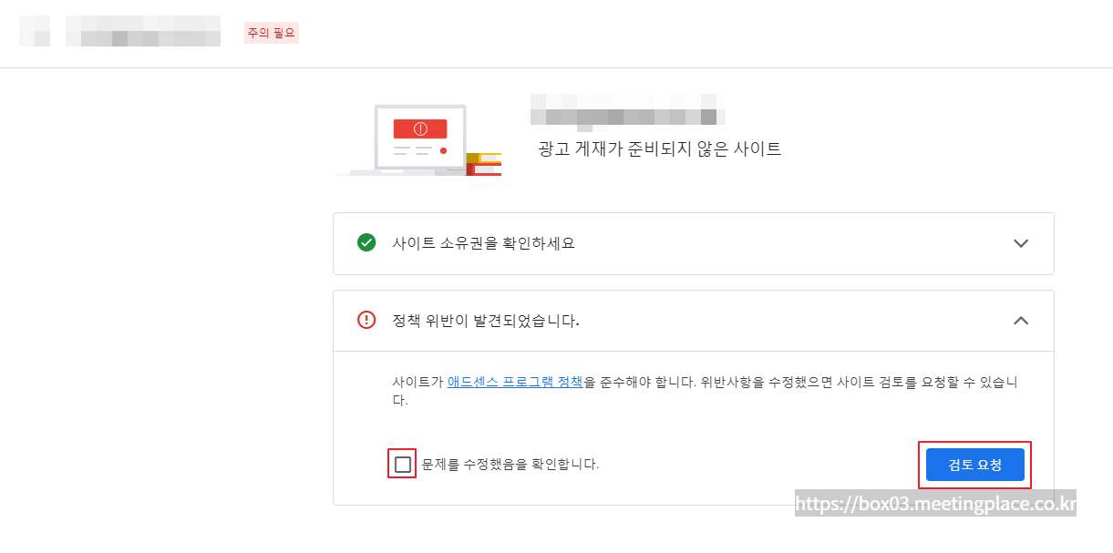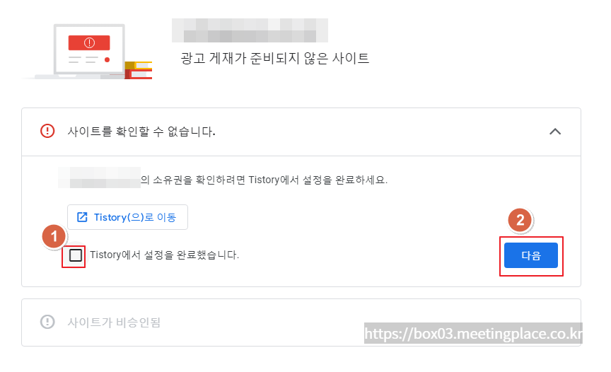 애드센스 미승인 오류 메세지 : 사이트를 확인할 수 없습니다