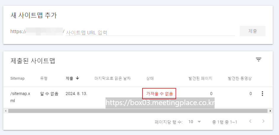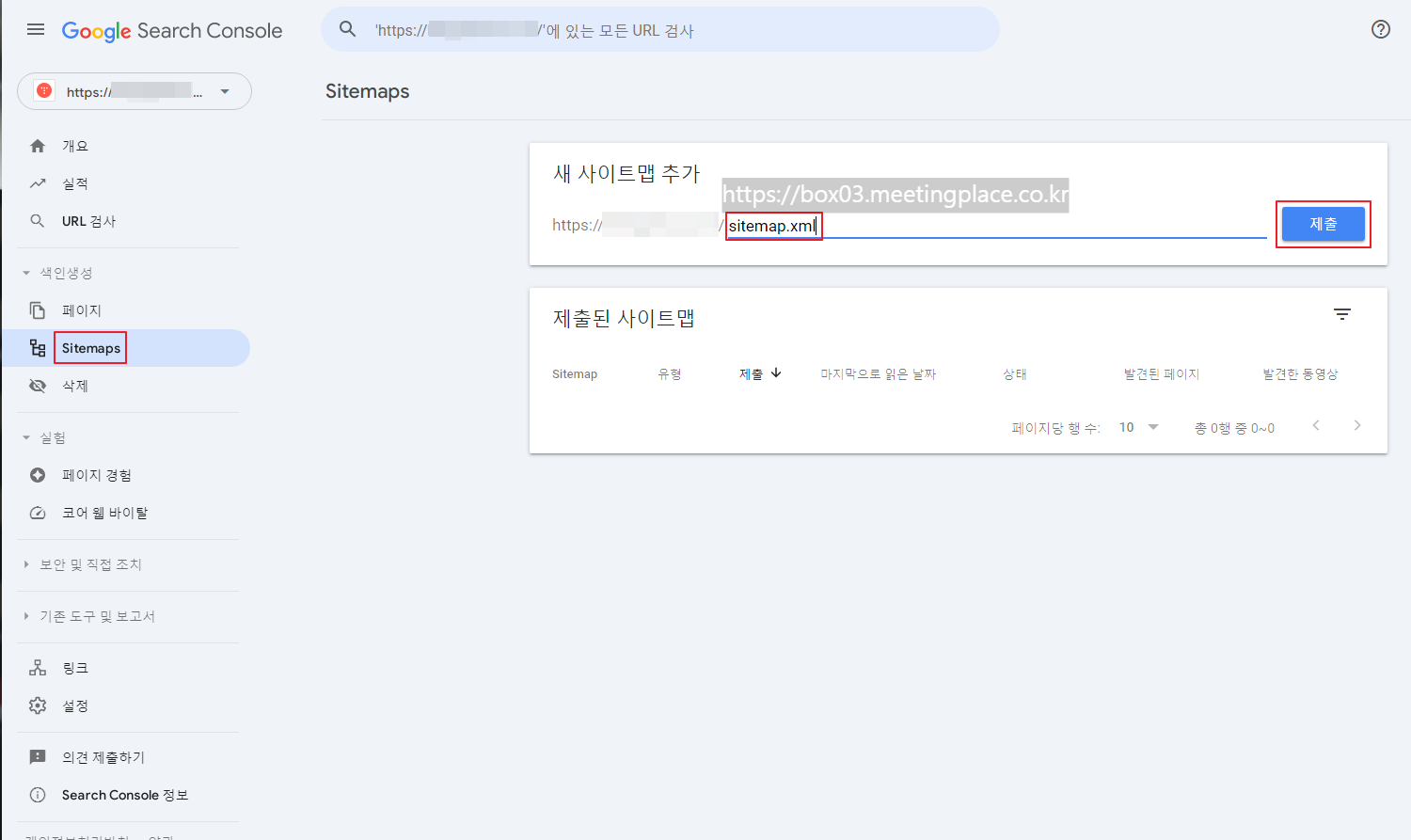 이런 화면에서 빈칸에서 sitemap.xml를 넣어서 제출을 눌러주세요