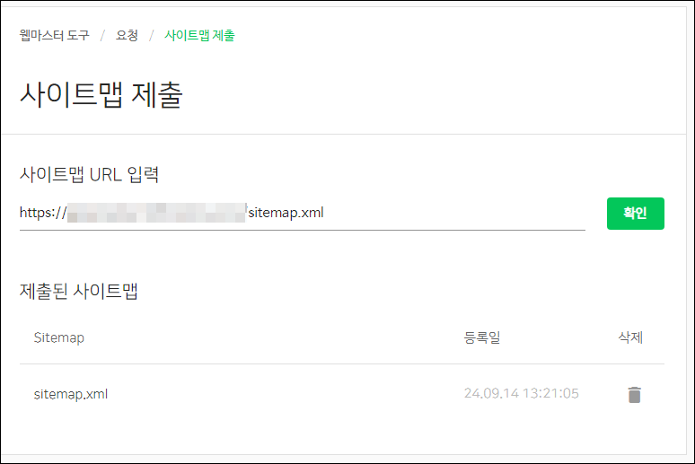 요청 메뉴를 클릭해보면 사이트맵 제출이 보일겁니다.