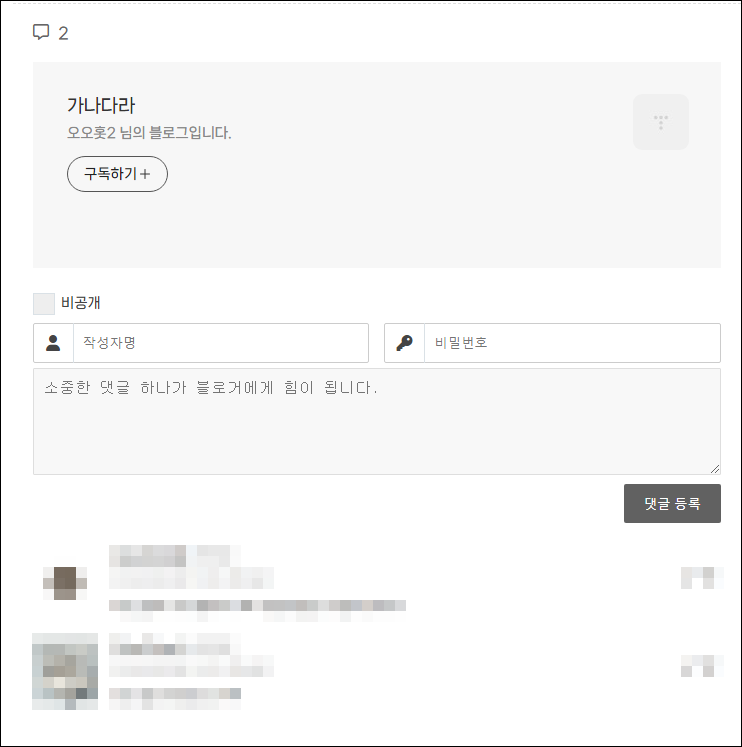 기본으로  현재 블로그에 보여지는  댓글들을 확인 할 수 있습니다.