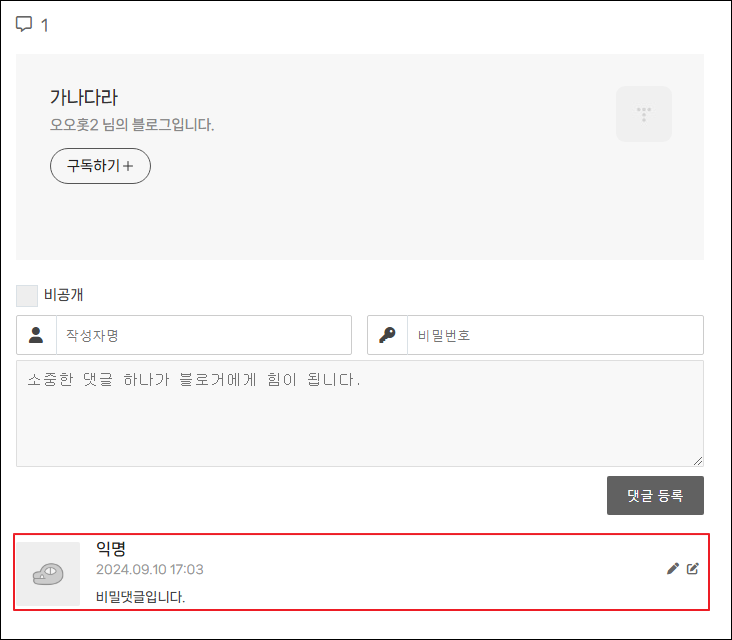 기본으로 현재 블로그에 보여지는 댓글들을 확인 할 수 있습니다.